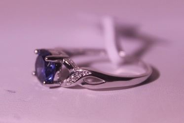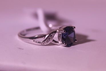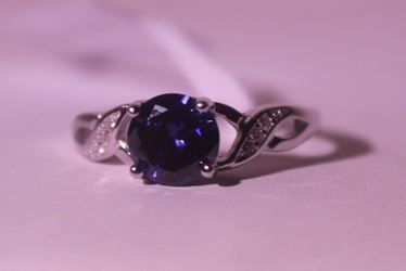 925 Sterling Ring - Lab Blue Sapphire; Gemstone 1.50 ct twt; Diamond .5 ct dwt
