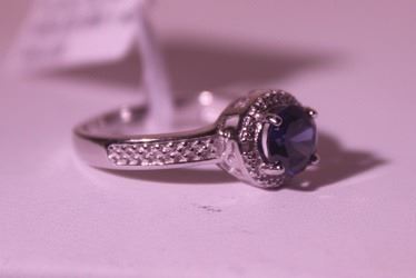 925 Sterling Ring - Lab Blue Sapphire; Gemstone 1.45 ct twt; Diamond .5 ct dwt