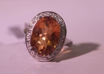 925 Sterling Ring - Lab Golden Sapphire; Gemstone 5 ct twt; Diamond .5 ct dwt