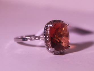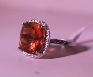 925 Sterling Ring - Orange Sapphire and Diamonds; Gemstone 7 ct twt; Diamond .5 ct dwt