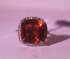 925 Sterling Ring - Orange Sapphire and Diamonds; Gemstone 7 ct twt; Diamond .5 ct dwt