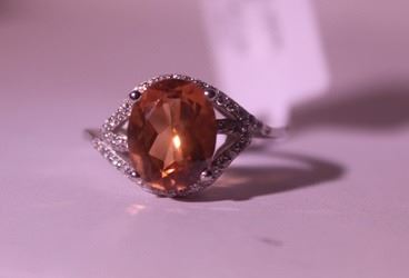 925 Sterling Ring - Lab Orange Sapphire; Gemstone 5.25 ct twt; Diamond .5 ct dwt