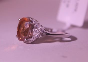 925 Sterling Ring - Lab Orange Sapphire; Gemstone 5.25 ct twt; Diamond .5 ct dwt