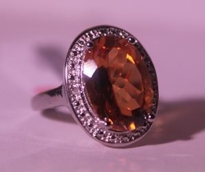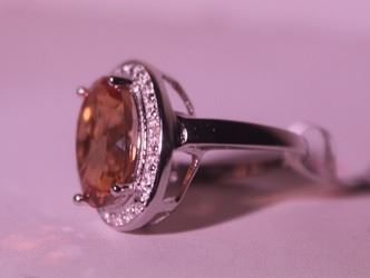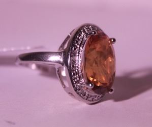 925 Sterling Ring - Lab Orange Sapphire; Gemstone 8 ct twt; Diamond .5 ct dwt