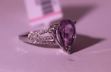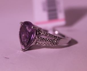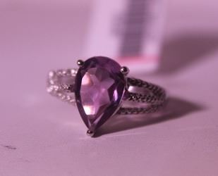 925 Sterling Ring - Amethyst, Pear Cut; Gemstone 3 ct twt; Diamond .5 ct dwt