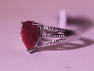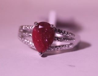 925 Sterling Ring - Pigeon Ruby, Pear Cut; Gemstone 3.90 ct twt; Diamond .5 ct dwt