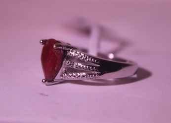 925 Sterling Ring - Pigeon Blood Ruby, Pear Cut; Gemstone 3.25 ct twt; Diamond .5 ct dwt