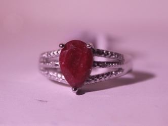 925 Sterling Ring - Pigeon Blood Ruby, Pear Cut; Gemstone 3.25 ct twt; Diamond .5 ct dwt