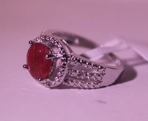 925 Sterling Ring - Pigeon Blood Ruby; Gemstone 2.50 ct twt; Diamond .5 ct dwt