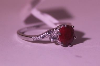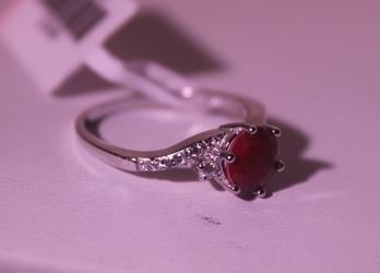 925 Sterling Ring - Pigeon Blood Ruby, Round Cut; Gemstone 2 ct twt; Diamond .5 ct dwt