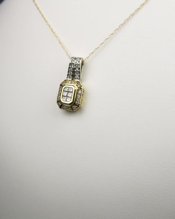 Exquisite Vintage style Diamond Necklace set with 34 round and princess cut diamonds weighing approx. 0.70 carats total of F-G colors and VS/SI clarity set in elegant 14 karat two-tone gold mounting. Retail $1,500-$2,000 Estimate $800-$1,200 Labor Intensive.