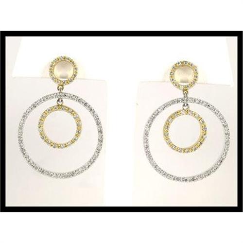 This marvelous pair of 14K white gold and yellow gold dangling earrings with circular design. 120 full cut diamonds are set on the earrings with an estimated total weight of 1.20 carats. The earring weigh 8.60 grams. The measurement is 1.27 inches by 0.89 inches. It is a very pretty designed earrings.