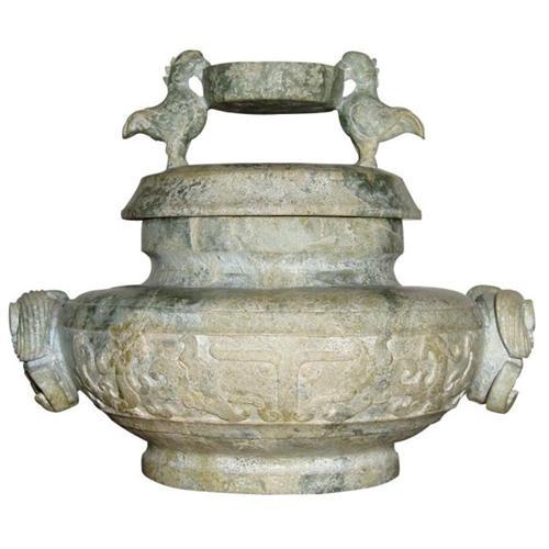 This jade object is a piece of exquisite jade double-ear vessel with intricate pattern in China.Jade was the Royal Gemstone and the Stone of Heaven in China and Asia, as the