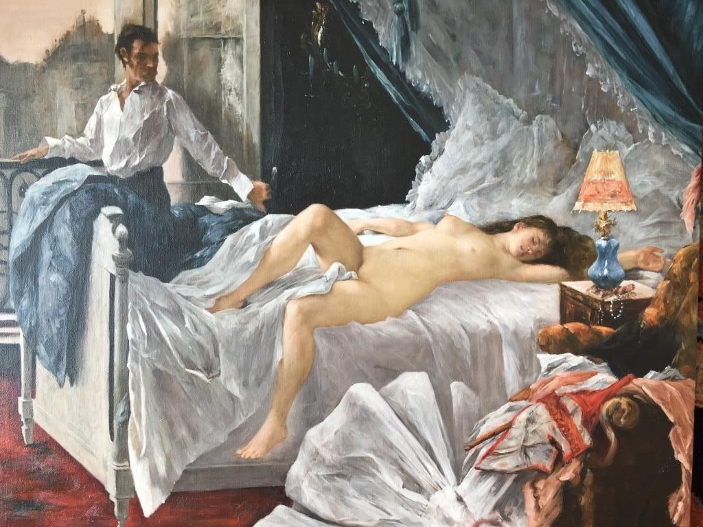 Exraordinary Painting by a follower and Student of Gervex, whose works are virtually priceless. Courtesan Boudoir Oil Painting.