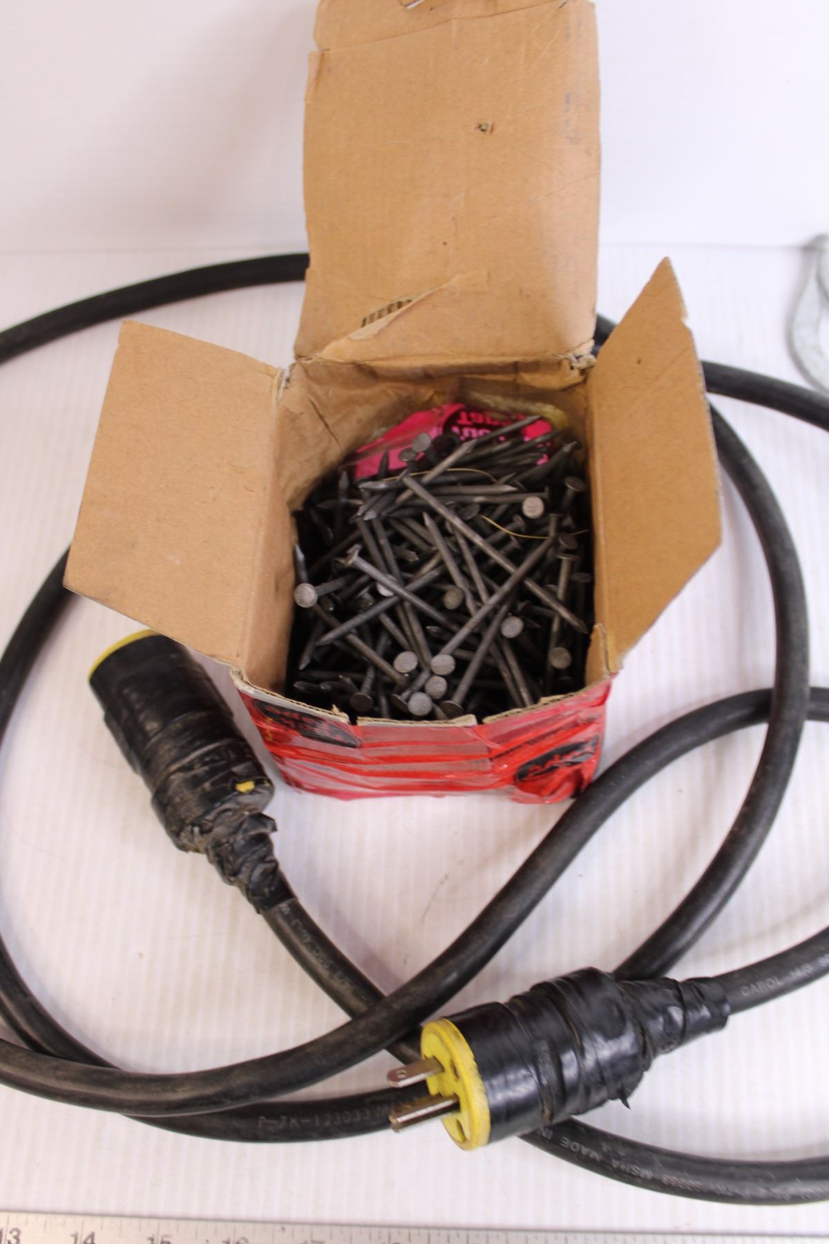 Extension Cord + Box of Nails + Blow Torch Head + Brake Tool