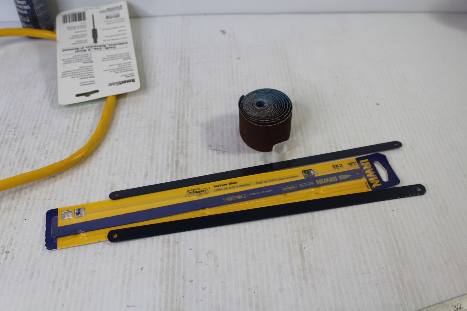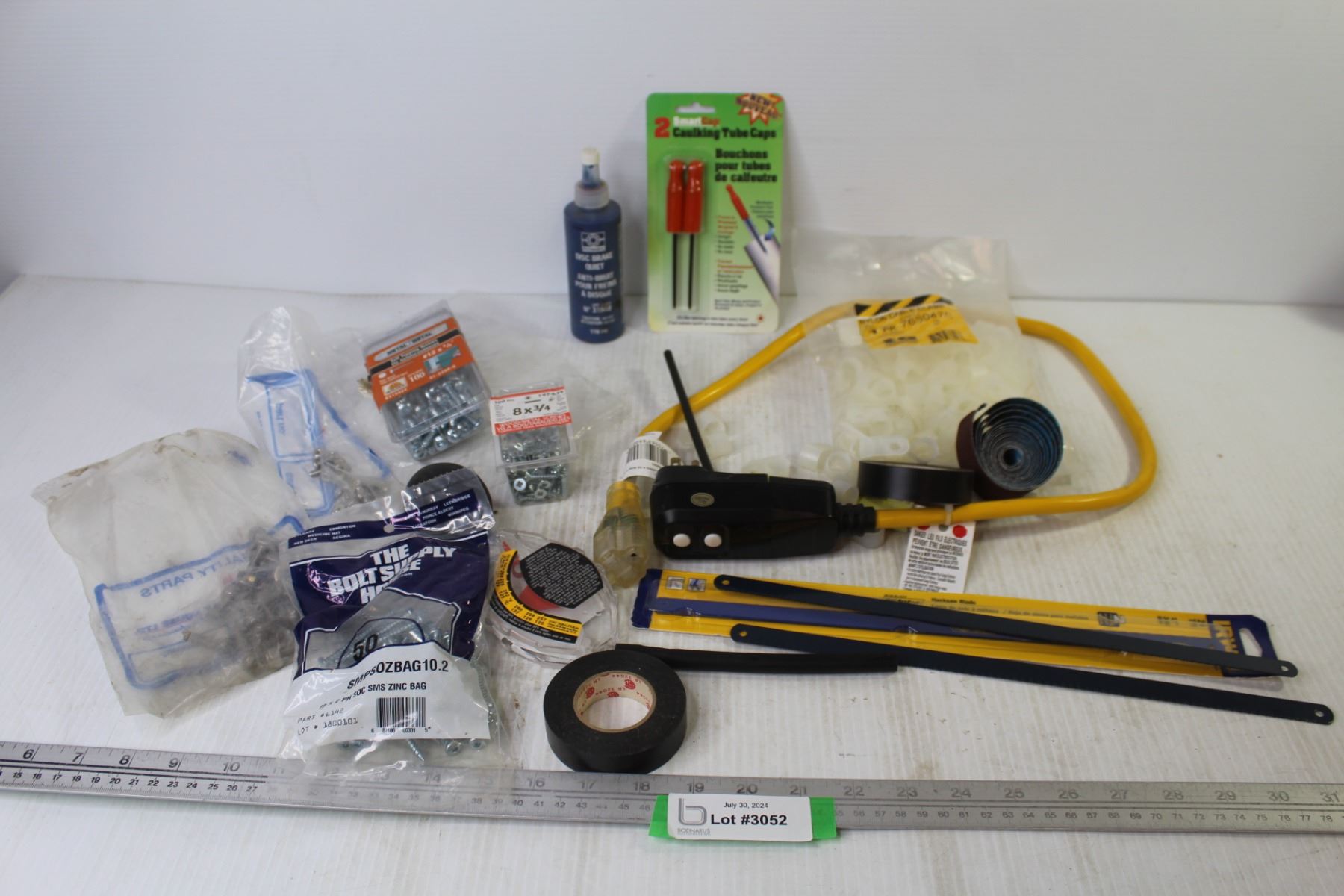 Extension Cord w/Switch - (2) Chalking Tool Caps - Screws Nuts & Bolts - Hacksaw Blades - Misc. Items