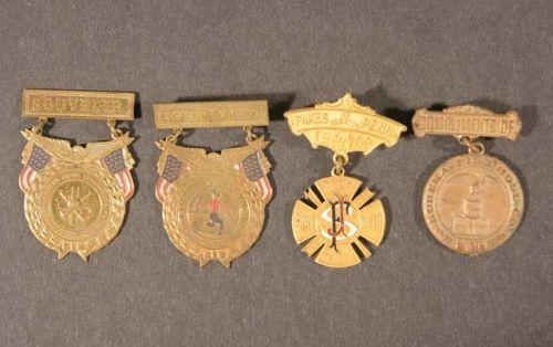 Extension pins, fire fighting medals. 1) Scranton, PA 2) Lebanon, PA 3) Troy NY Fire Dept. Truck #1 4) Eureka Fire Hose Co.