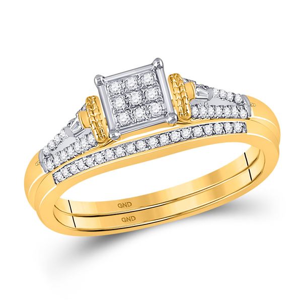 His Hers Diamond Cluster Matching Wedding Set 3/8 Cttw 10kt Yellow Gold