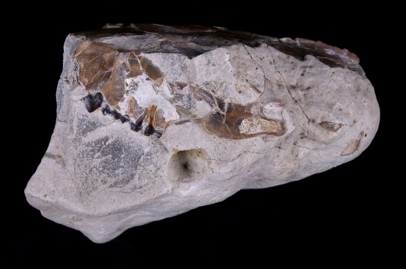For your bidding pleasure is this Extinct Mammal Oreodont Fossil. Oreodont, any member of a diverse group of extinct herbivorous North American artiodactyls (even-toed ungulates) that lived from the Middle Eocene through the end of the Miocene (between about 40 million and 5.3 million years ago). The condition of this fossil is good with one lose piece and a couple cracks to the rock that the fossil is preserved in. They are often compared to sheep in size and shape, oreodonts are usually considered members of the suborder Typlopoda (the group that contains camels); however, some studies place them outside that group. Oreodonts were unlike any living mammal group in the structure of their skeleton and dentition. Oreodont fossils are especially common in the Brule Formation of the White River Badlands of South Dakota, U.S. This formation is composed of river deposits and paleosols (soils buried under sedimentary rock) that developed in savanna-like environments about 34 million years ago. The measurements of this fossil are 3 1/2" x 6 1/2".