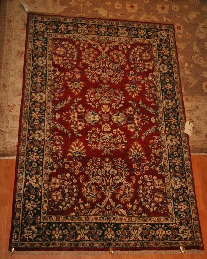 Extra Fine Indian Sarouk Deep Burgundy/Blue 4 x 6