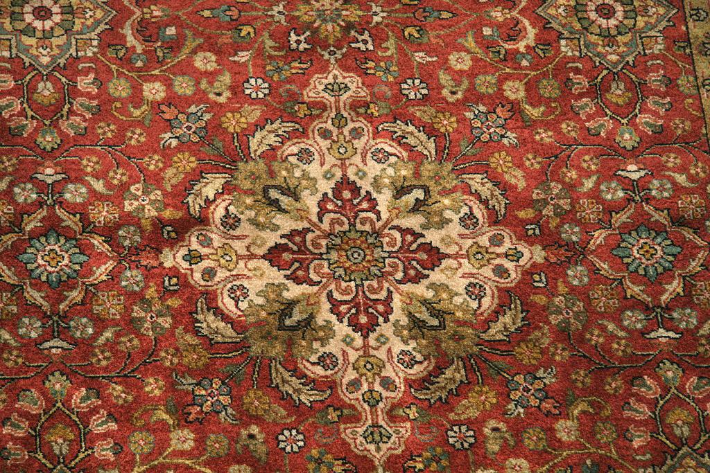 Hand Knotted in India, circa 2005-2010. NZ wool with all natural dyes. Excellent condition.