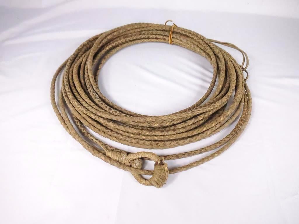 Braided rawhide with just about the finest handmade honda I've seen. Great condition.