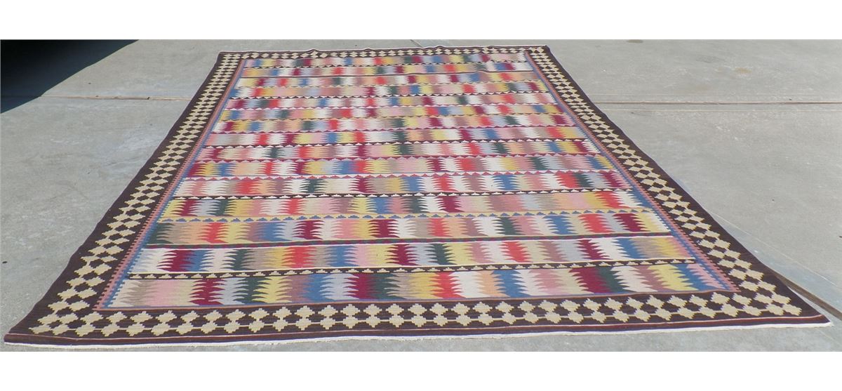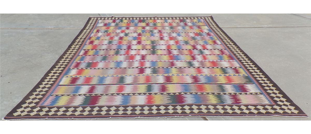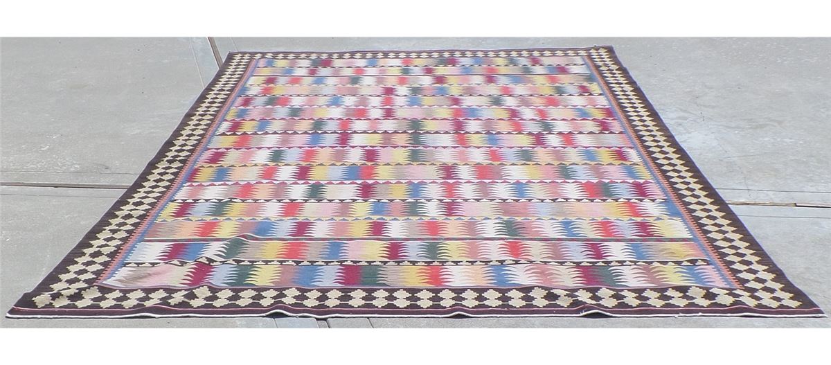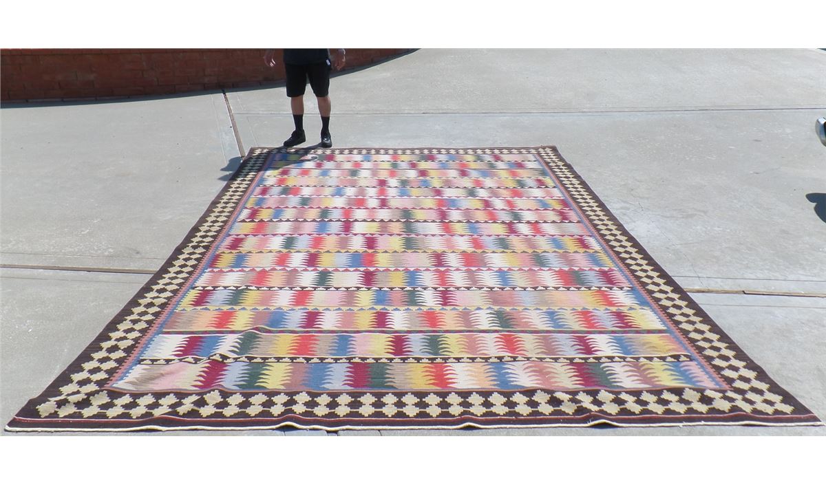 Extra Large Kilin Rug. Circa 1960s. Made of goat hair, wool and cotton. This extra large rug measures 13 feet 9 inches x 10 feet 2 inches. It is from the Middle East. Wonderful colorful item. Condition: Good, see images. Shipping: $40.
