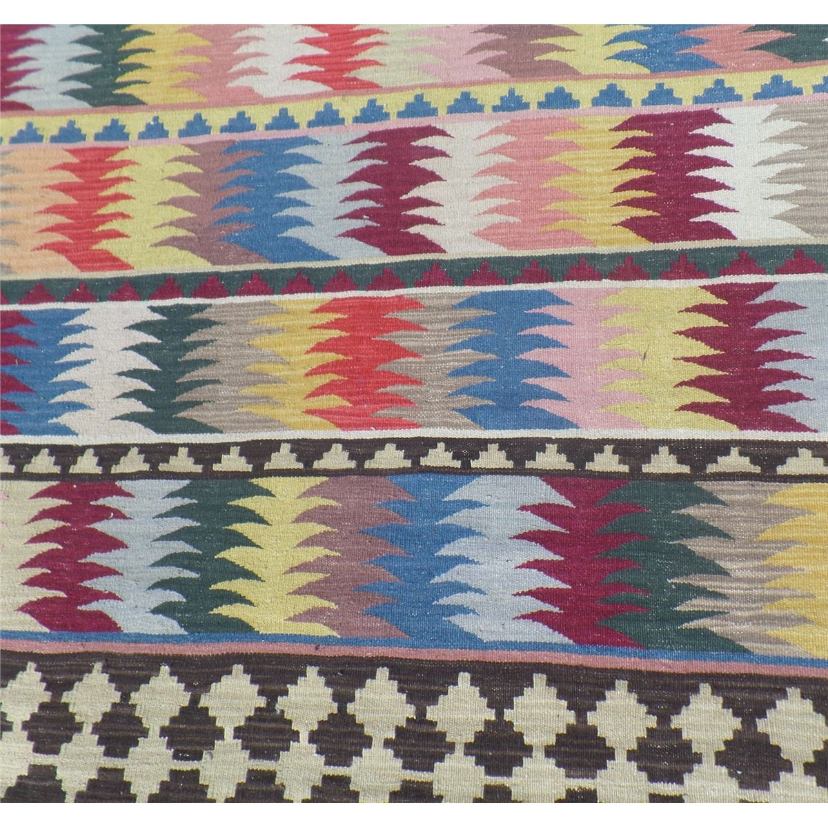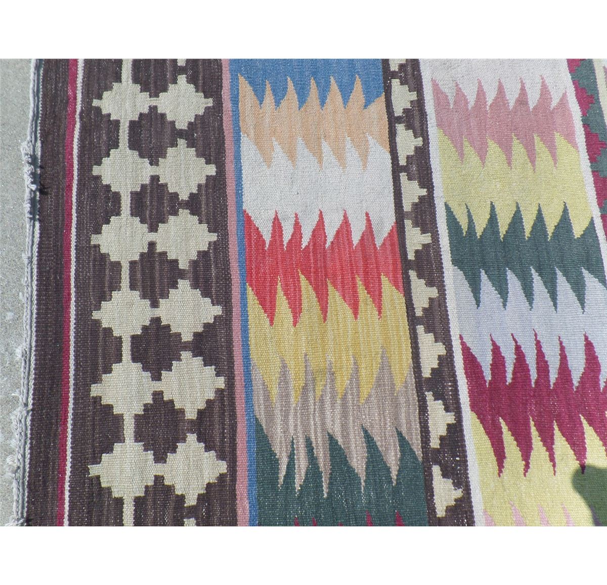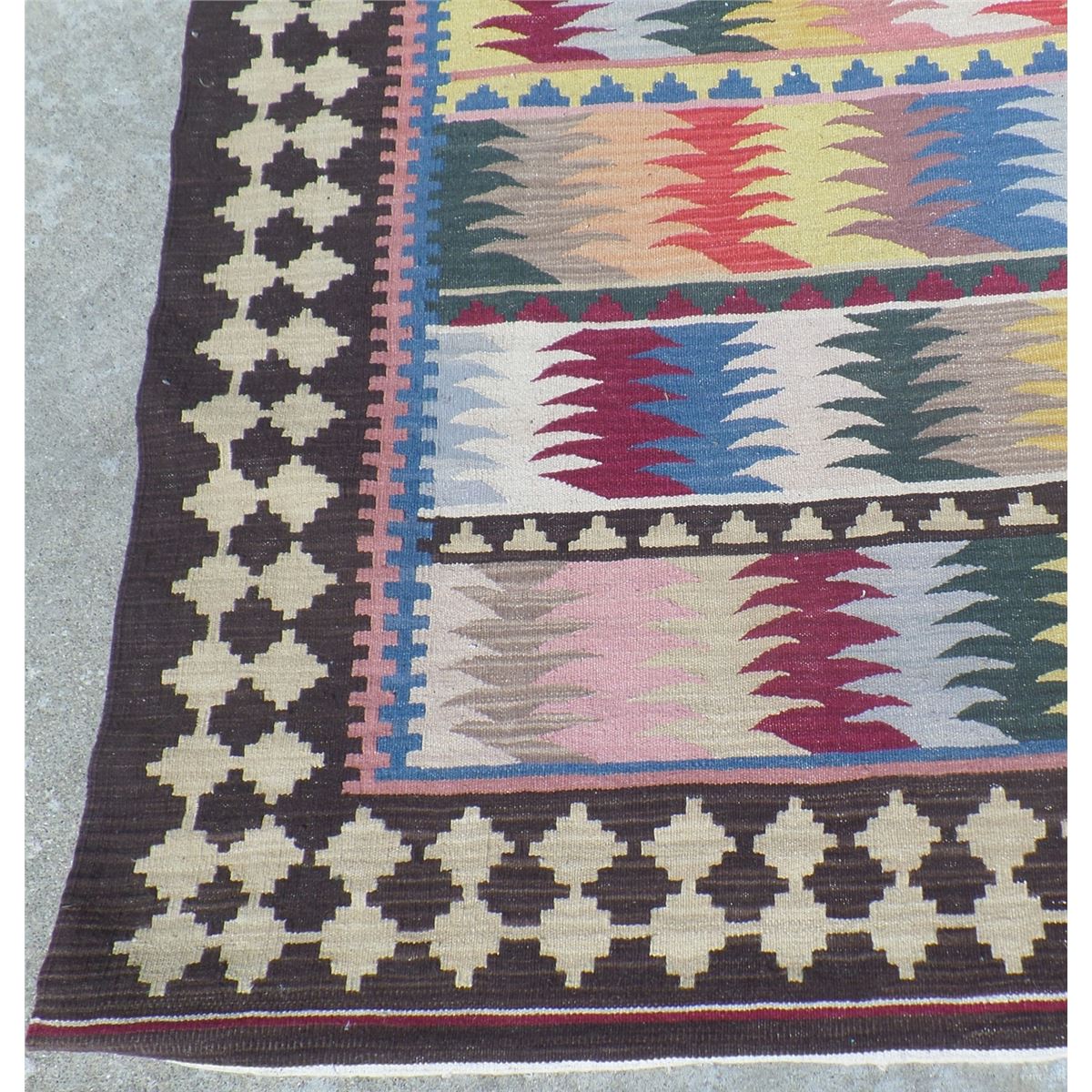 Extra Large Kilin Rug. Circa 1960s. Made of goat hair, wool and cotton. This extra large rug measures 13 feet 9 inches x 10 feet 2 inches. It is from the Middle East. Wonderful colorful item. Condition: Good, see images. Shipping: $40.