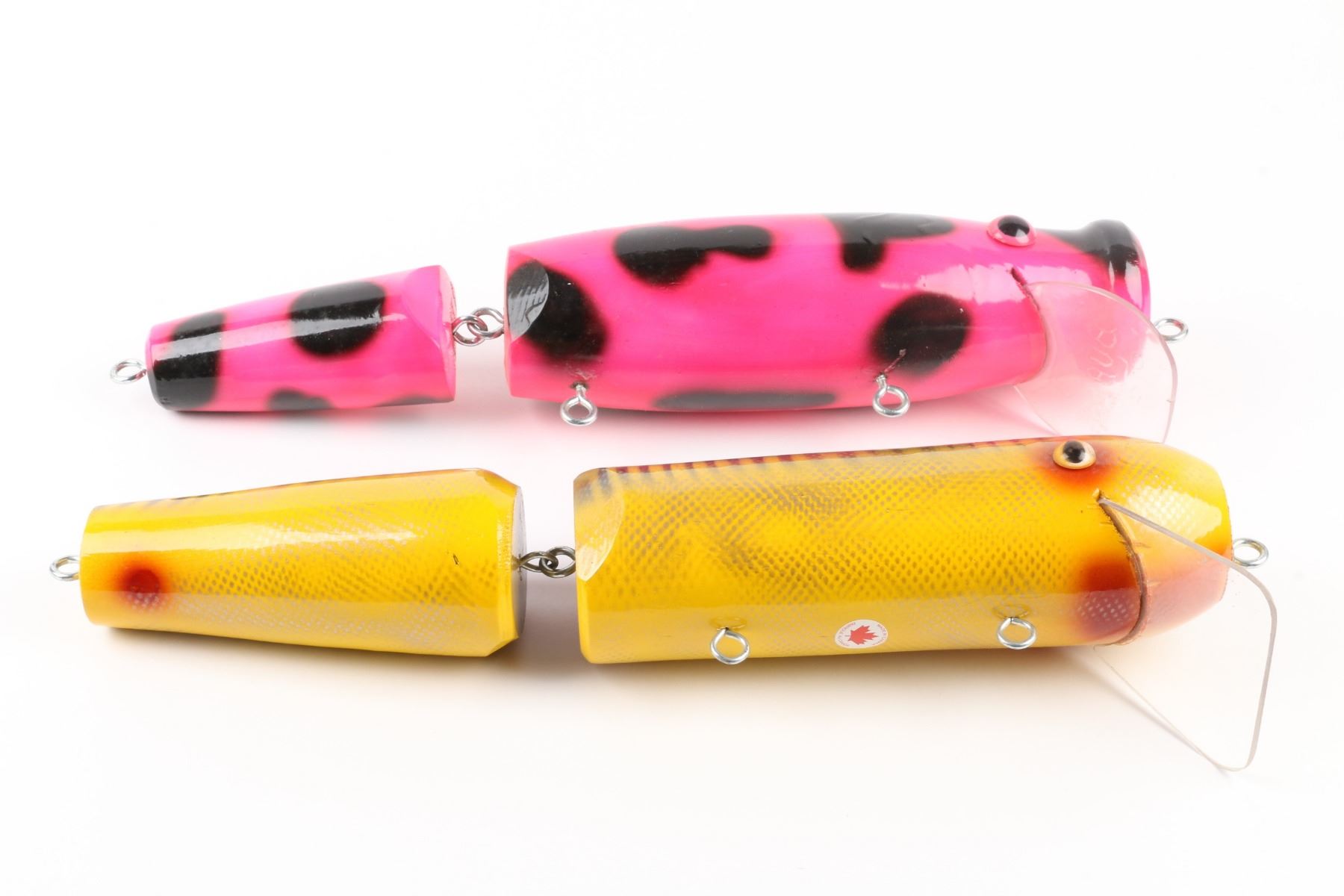Charron Baits, Canada. Material: Wood. Quantity: 2. Grade: EX+. 16" Each Est. $75-100.
