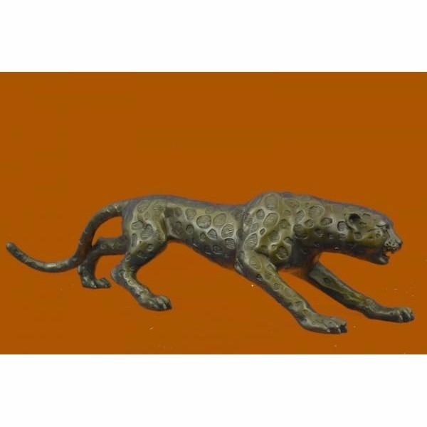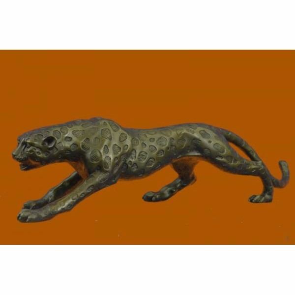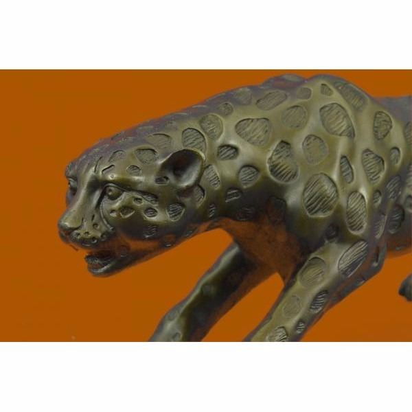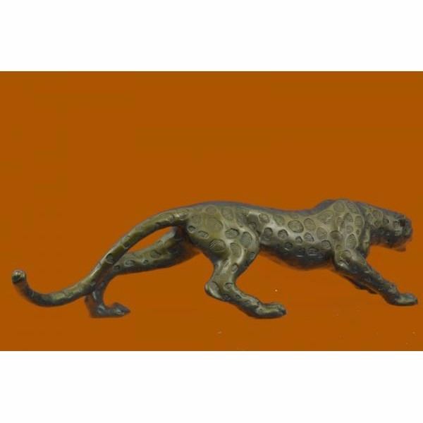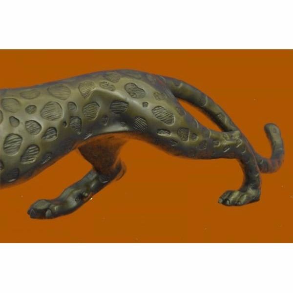 He Breaks Into Full Stride As He Closes In On His Prey. His Muscles Flex As He Pushes Himself To The Limit. This Sculpture Draws You In To The Action And Lets Your Imagination Run Wild As You Join Him On His Chase As He Runs Across The Wide Open Plains Of The Outdoors. This Amazingly Detailed Sculpture Portrays The Cheetahs Stride Beautifully As He Transitions His Paws And His Weight While Running. His Facial Expression Shows Calm, Cool, And Collected Concentration While In Pursuit. A Suiting Soft Brown Patina Highlights The Muscles On The Cheetah's Legs, Paws, Head. The Head Of The Cheetahs Is Beautifully Detailed Right Down The Shape Of The Skull, Jaw Line, Ears And Facial Structure. This Bronze Sculpture Was Casted Using The Lost Was Method. This Sleek And Graceful Piece Is Perfect For The Wildlife Lover In You. This Original Extra Large Sculpture Is Signed By the artist Miguel Lopez. Condition : This sculpture is in perfect condition. Bronze Dimensions :Height 8" x Width 32" Weight :24 LBS Inventory : 28YDW20314182