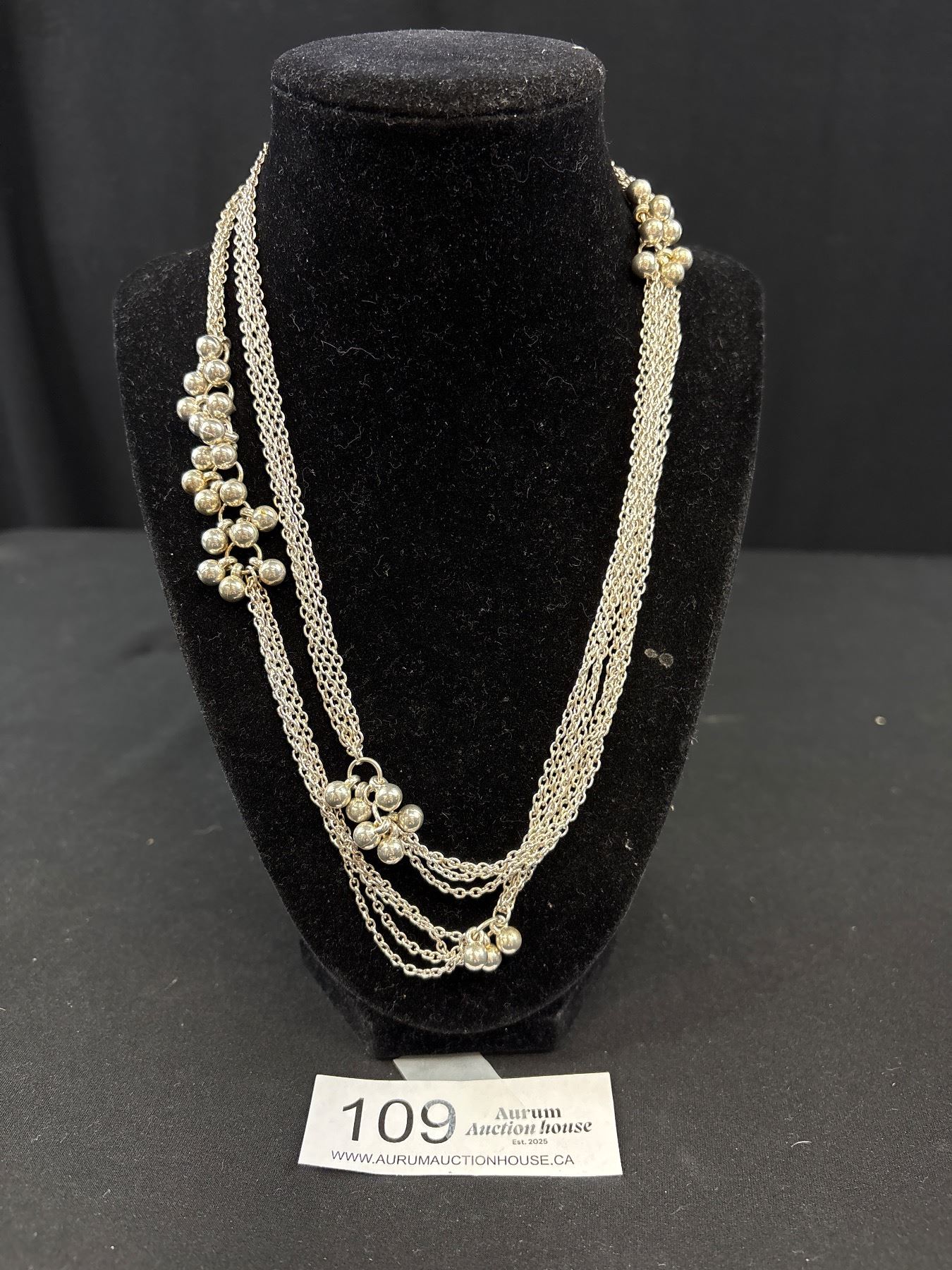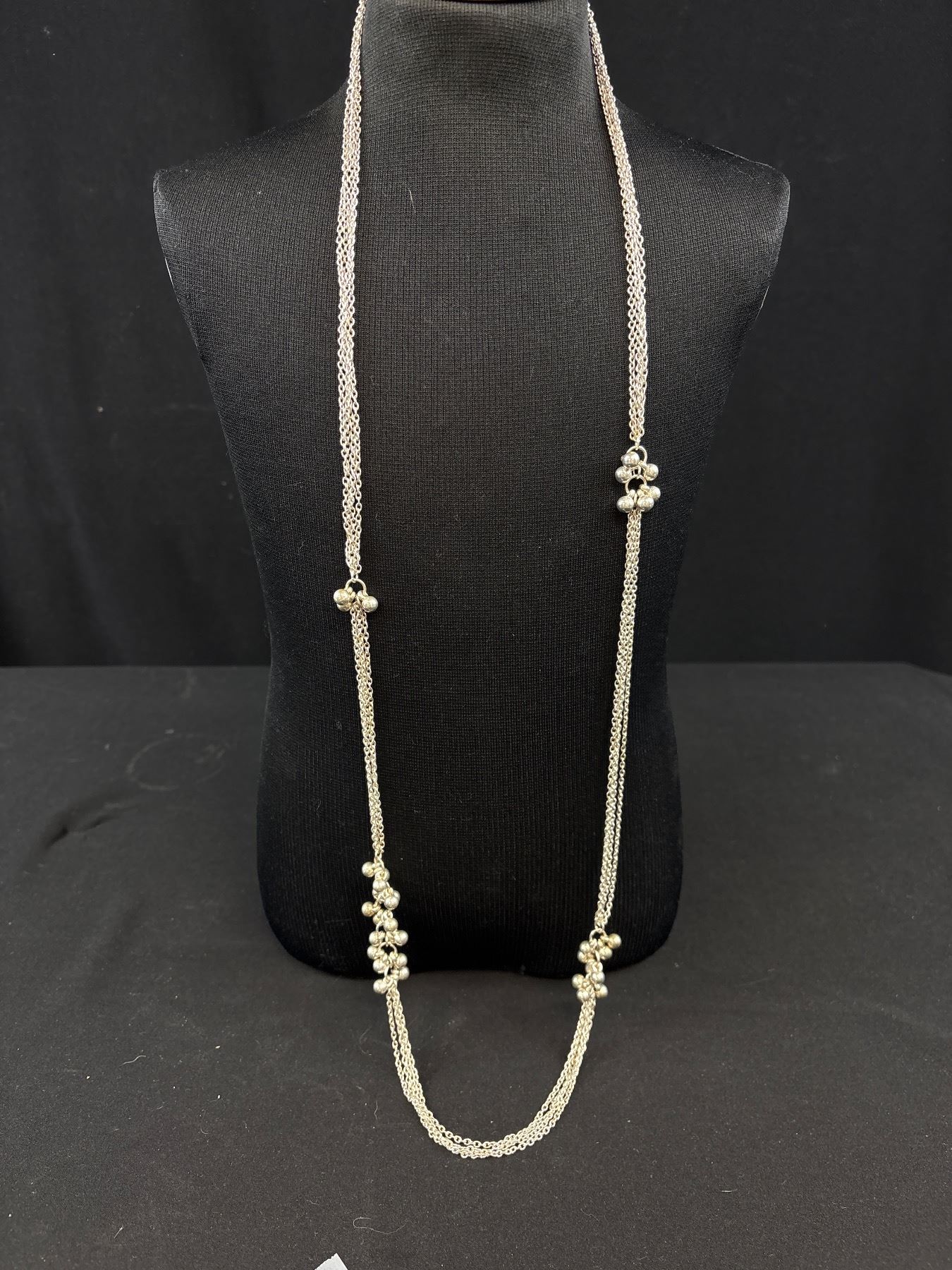 Extra Length 4 Strands Silver Plated Necklace Marked LBVYR