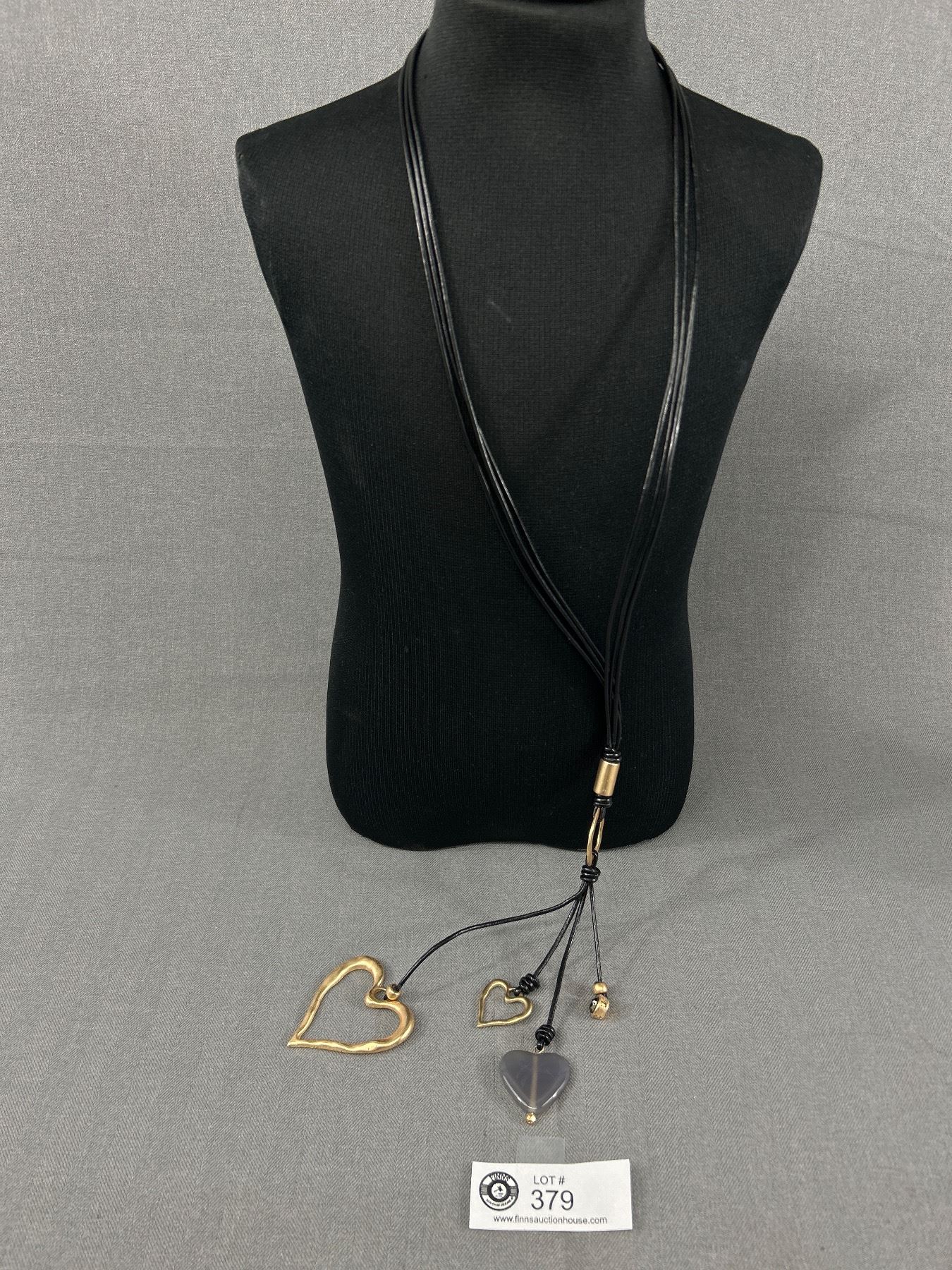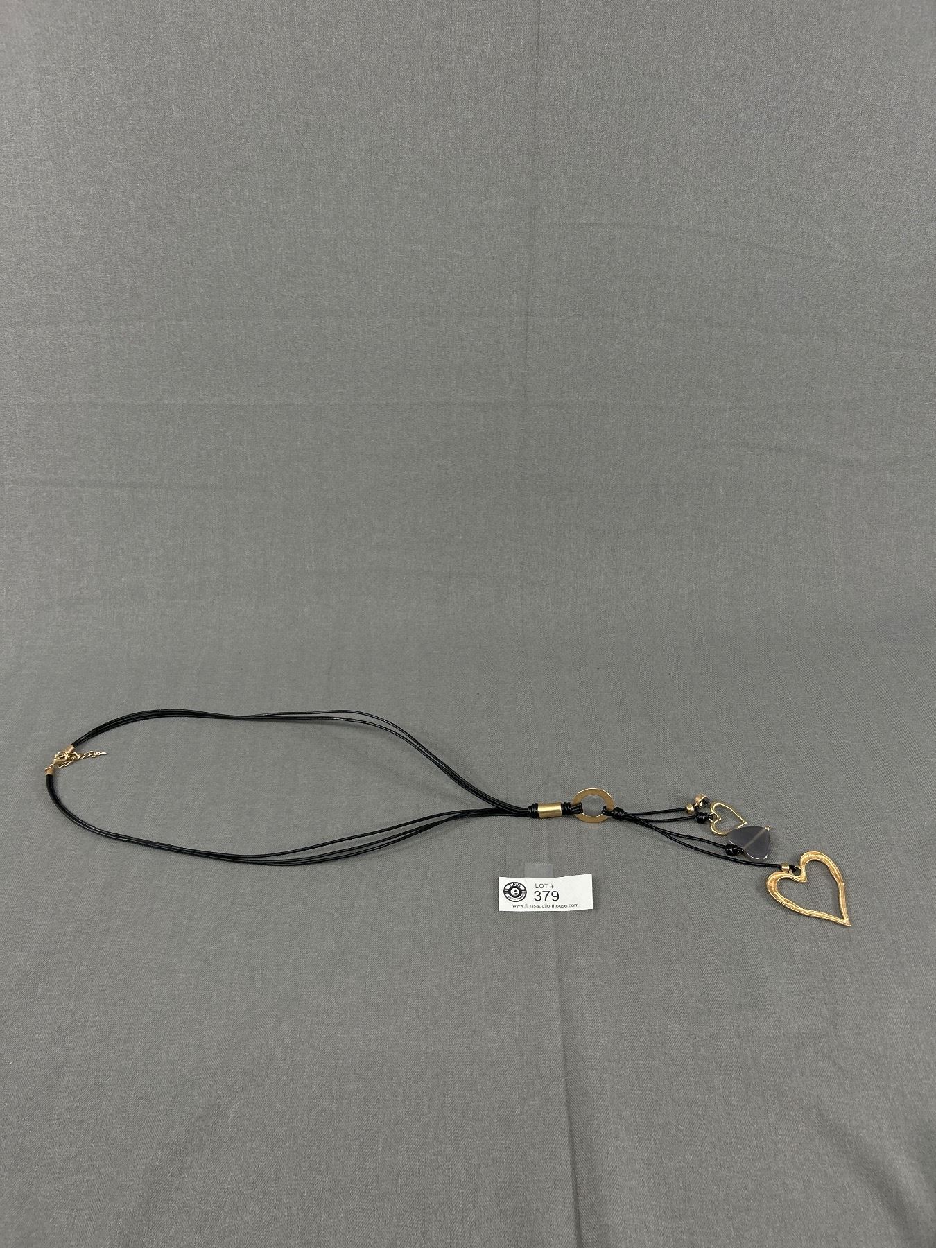 Extra Length Black Cord with Gem Stone & Golden Hearts Necklace