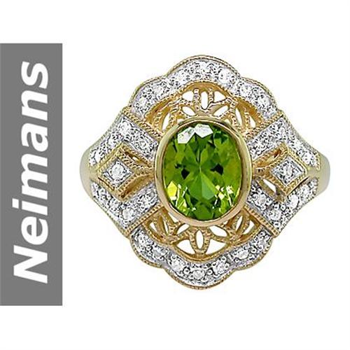 </tr></table><table border=0 width=100% cellspacing=0 cellpadding=10><tr><td valign=top style='background-repeat: no-repeat; font-family: Verdana; font-size: 8pt'><b><!-- ///START/// INSERT JEWELRY SPECIFIC DATA --><font size=5>This oval cut Peridot ring with extra fine clarity and color. Remarkably set in 14k yellow gold and the ring is highlighted with 0.16 ct round brilliant diamonds. The size of the ring is 7.</font><font size=5>