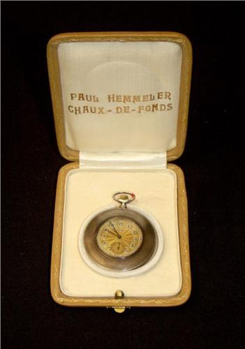 Jolie montre de poche en argent 875 extra plate, signée sur le cadran RIVAL, cadran en métal doré et argenté, chiffres à cartouches, petite seconde à 6 heures, échappement à ancre, en très bon état, avec étui, env. 1930