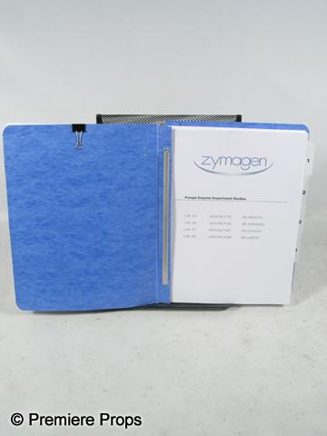 Extraordinary Measures - As seen in Extraordinary Measures, this is a blue Zymagen lab experiment folder with a 'Comparison of Different rhGAA Preparations' CONFIDENTIAL paper clipped on the front. Features the 'Pompe Enzyme Experiment Studies.' This folder has four sections with all pages filled with different scientific information. (approx. 9" x 11.5" x 1.75") (EXM2034)