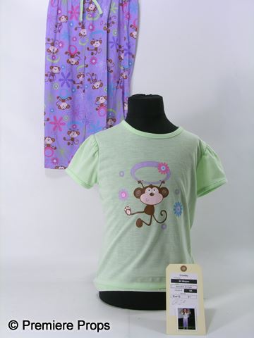 Megan (Meredith Droeger) green "Circo" shortsleeve crewneck shirt with monkey and floral print in front, (Size S) and purple "Circo" pajama bottom with monkey and floral print. (Size S) Includes wardrobe tag!