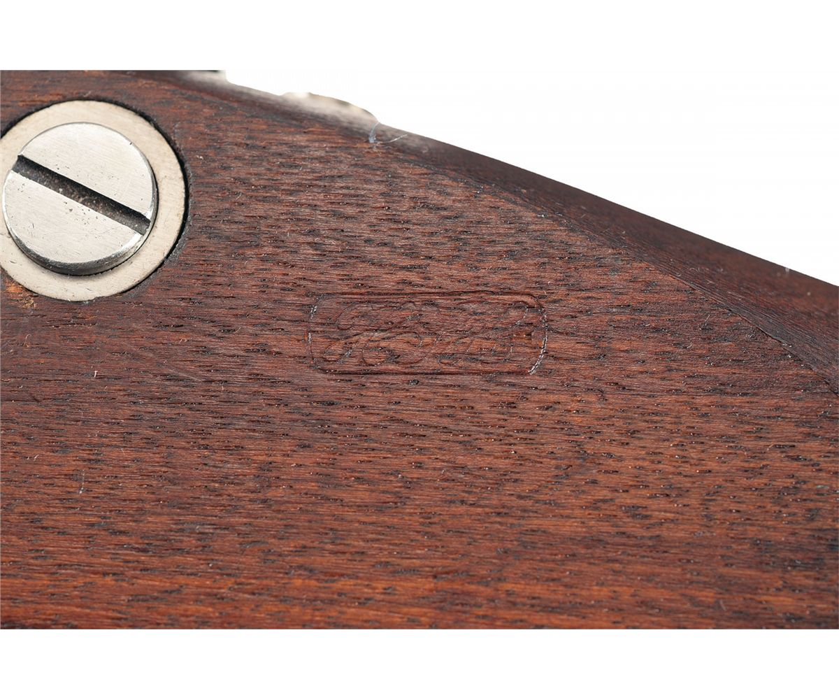 Condition: Excellent plus as issued, the bright components have some minor scattered spotting and some scattered minor scratches. The blackened breechblock assembly retains 98% original finish with some wear on the front and some scattered minor scratches. The lock plate and hammer retain nearly all of the muted case colors with some scattered minor scratches. The stock is also excellent plus with some scattered minor pressure dents and some scratches scattered overall. Most likely the finest Second Model Allin Springfield we have ever offered at auction!