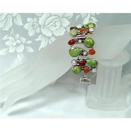 Please Note I only ship to Canada or the continental USA and paypal's payment MUST BE A CONFIRMED ADDRESS <p>Welcome to our Asian collection! Our collections span the years and we like to think we incorporate almost everyone's tastes. For the daring individual who appreciates the LARGE and very ornate items to the shopper that prefers a smaller adornment! Never will you find our jewellery in your neighborhood mall for if it isn't different we don't offer it. Bold designs set in sterling silver definitely not for the faint of heart. I SIMPLY adore this design and for it clearly illustrates unique, BOLD, unusual! Finely executed spider web accented with carnelian and pearl make a lasting impression. With an approximately length of 8 inches this is a very bold piece of jewellery. The bracelet has a depth of 35mm. A gram weight of 71 this is sure to please! (Item #z-509)