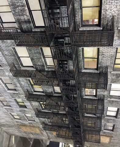 Extreme Measures (1996) - For the opening sequence of the film, this motion control filming model was used as a transition between a helicopter shot and a stedicam operator sitting on a camera crane to create one seamlessly executed shot. Fabricated from wood, styrene and with a cast resin fire escape. 120" long x 72" wide. 1:12 ratio. This incredible, handmade miniature is from the celebrated collection of Academy Award winning New Deal Studios. New Deal Studios is a 21st Century Media Studio, unlike any in the world. A full-service film production and visual effects studio, with over 20 years of iconic imagery, New Deal Studios develops, designs, prototypes, and creates all types of high caliber media projects. Founded in 1995 by Matthew Gratzner, Ian Hunter and Shannon Blake Gans, this artist owned and operated independent studio, born in the heyday of visual effects, has truly evolved into the technology driven studio for the future, consistently delivering the perfect marriage of artistry and technology. Award winning credits by New Deal Studios include high-profile projects such as Dark Knight Rises, Hugo, The Avengers, Oz the Great and Powerful, Iron Man, The Dark Knight, Watchmen, I am Legend, Night at the Museum, Whiteout, 2012, Alice in Wonderland, Inception, Battleship and Interstellar.