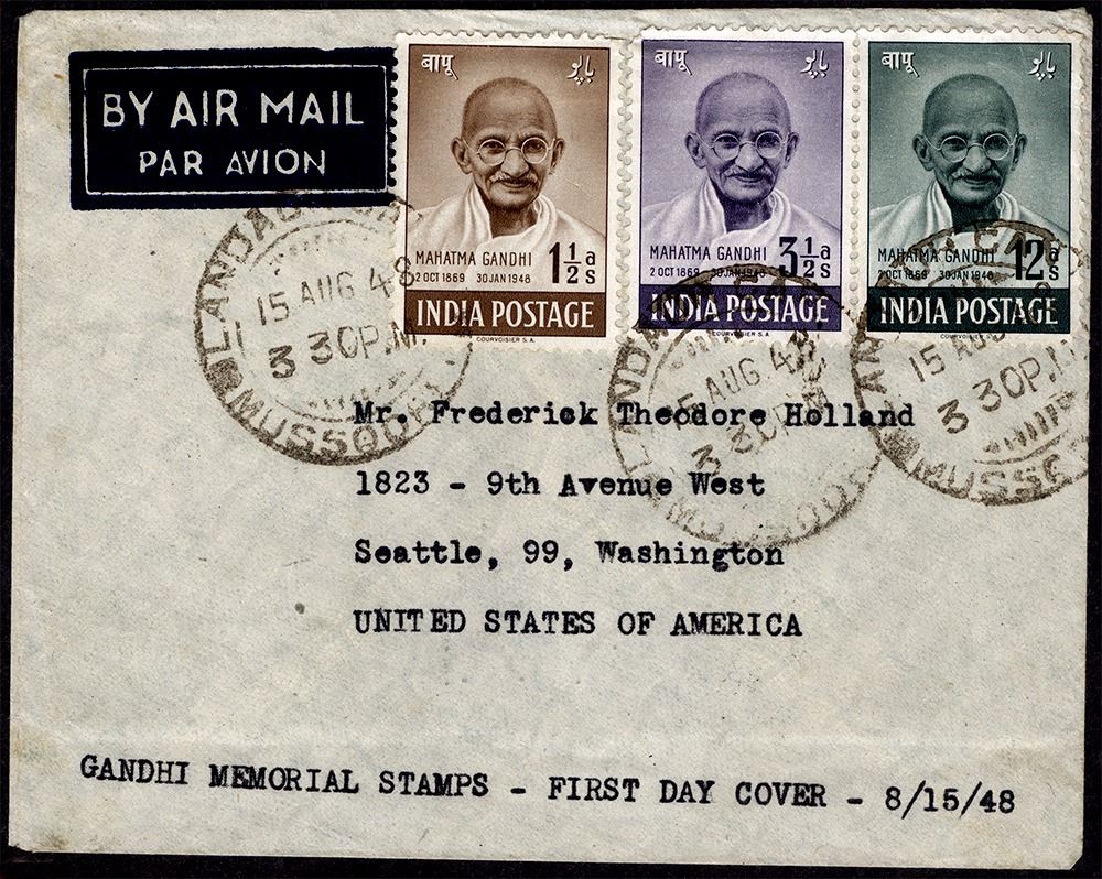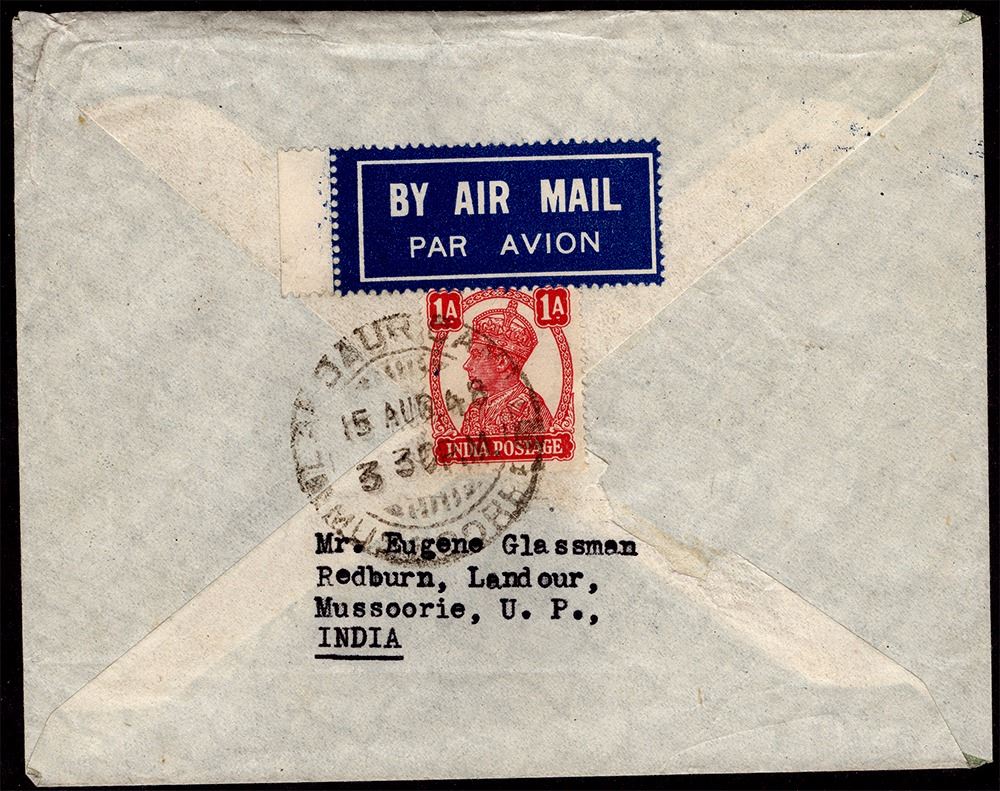 Extreme rare Cover of Gandhi 3+1V with KGVI Stamps Mussoorie to USA