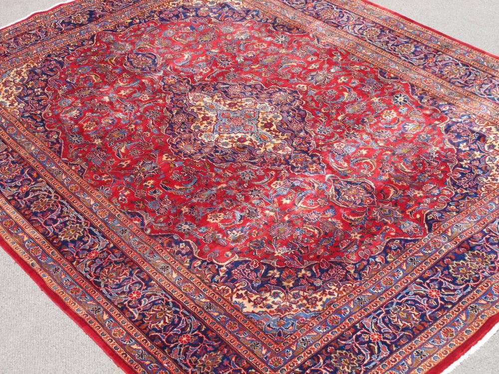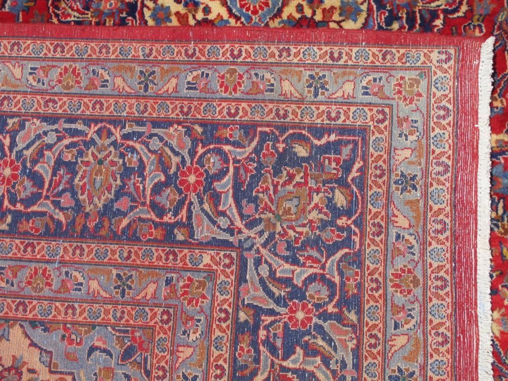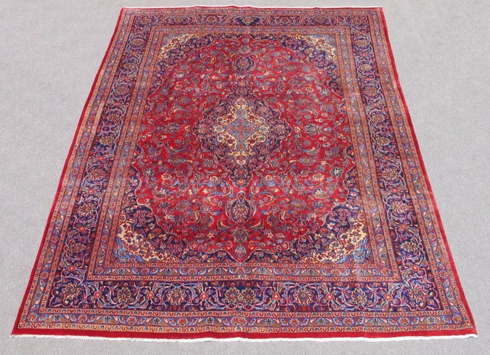Rug: Handmade Semi Antique Persian Kashan Area Rug; Material: Very fine quality wool pile, all natural vegetable dye; Size: 12.7 x 9.5 feet; Foundation: Cotton; Design: Persian Kashan; Origin: Iran