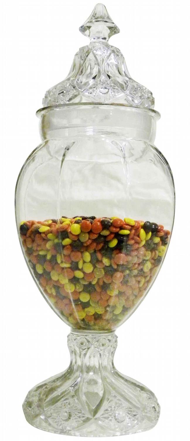Extremely Ornate Pressed Glass Candy Jar w/lid. Daisy button design. No chips or cracks. 20 inches tall.