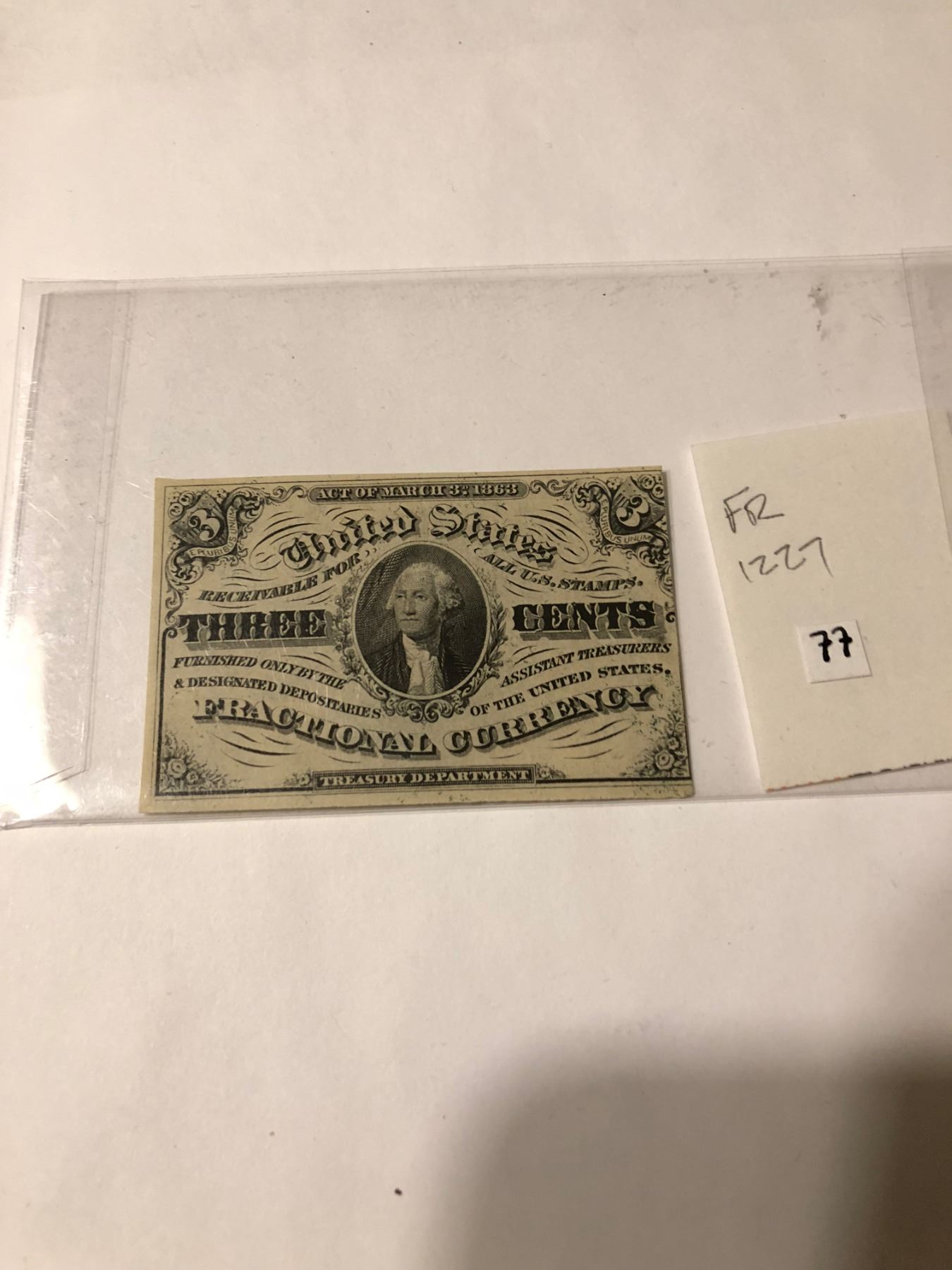 Extremely Rare 1863 3 Cents Dark Curtain Portriat Fractional Currency MS High Grade Book F-1227