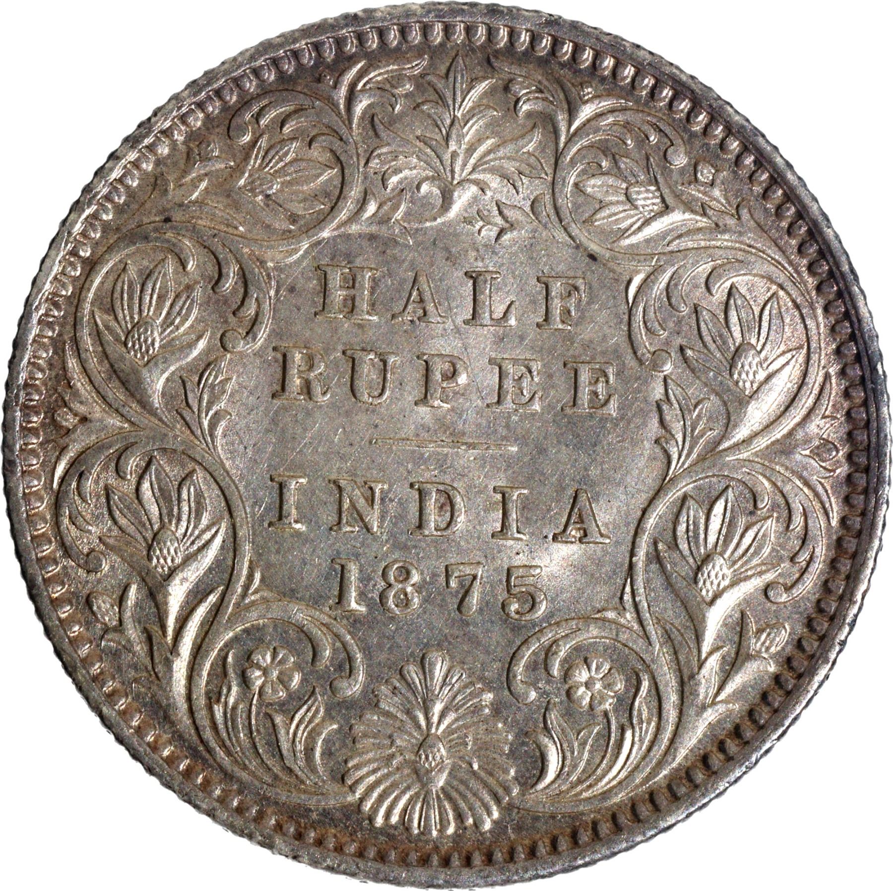 Extremely Rare 1875 Calcutta Mint of Silver Half Rupee Coin of Victoria Queen.