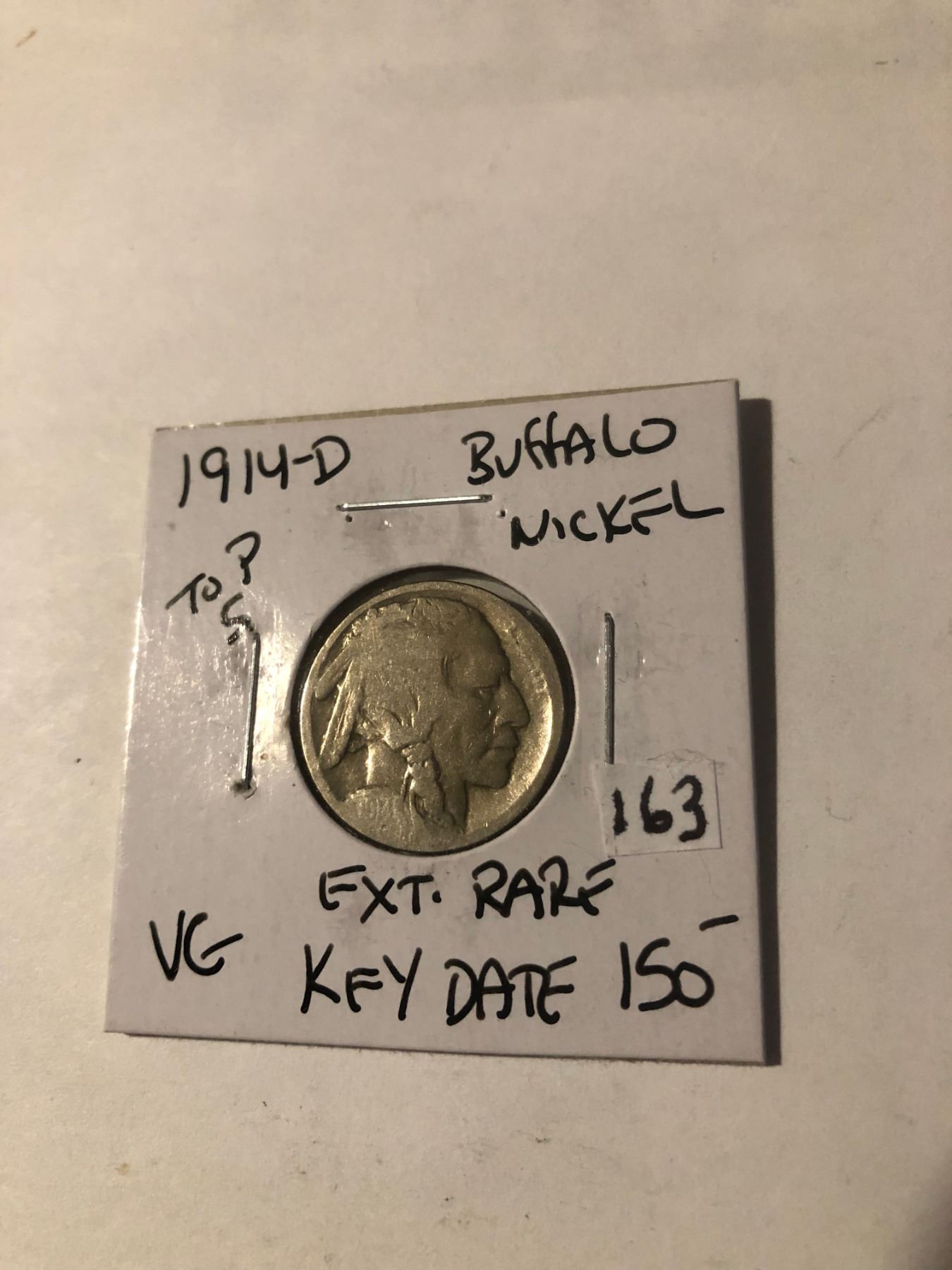 Extremely Rare 1914 D Top 5 Buffalo Nickel Key Date VG Grade acid wash