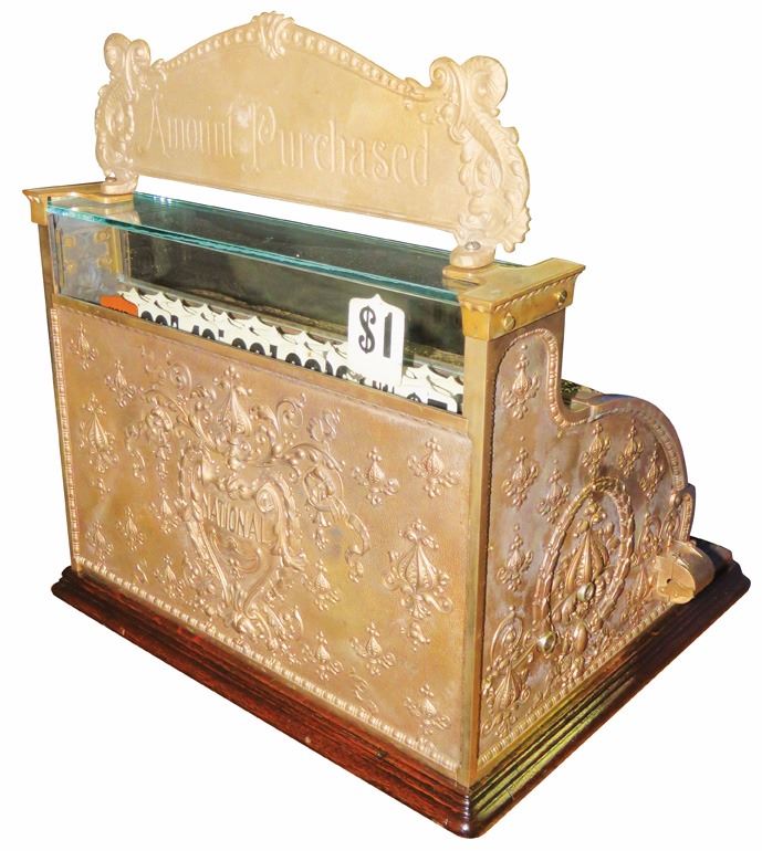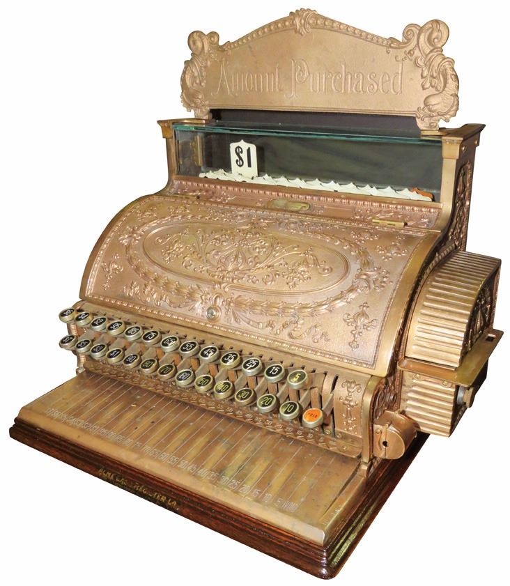 Extremely Rare Acme Cash Register Co. No. A347CD6134A. Formerly National Model 347. All brass. Very unusual no drawer cash register. Good original working condition.