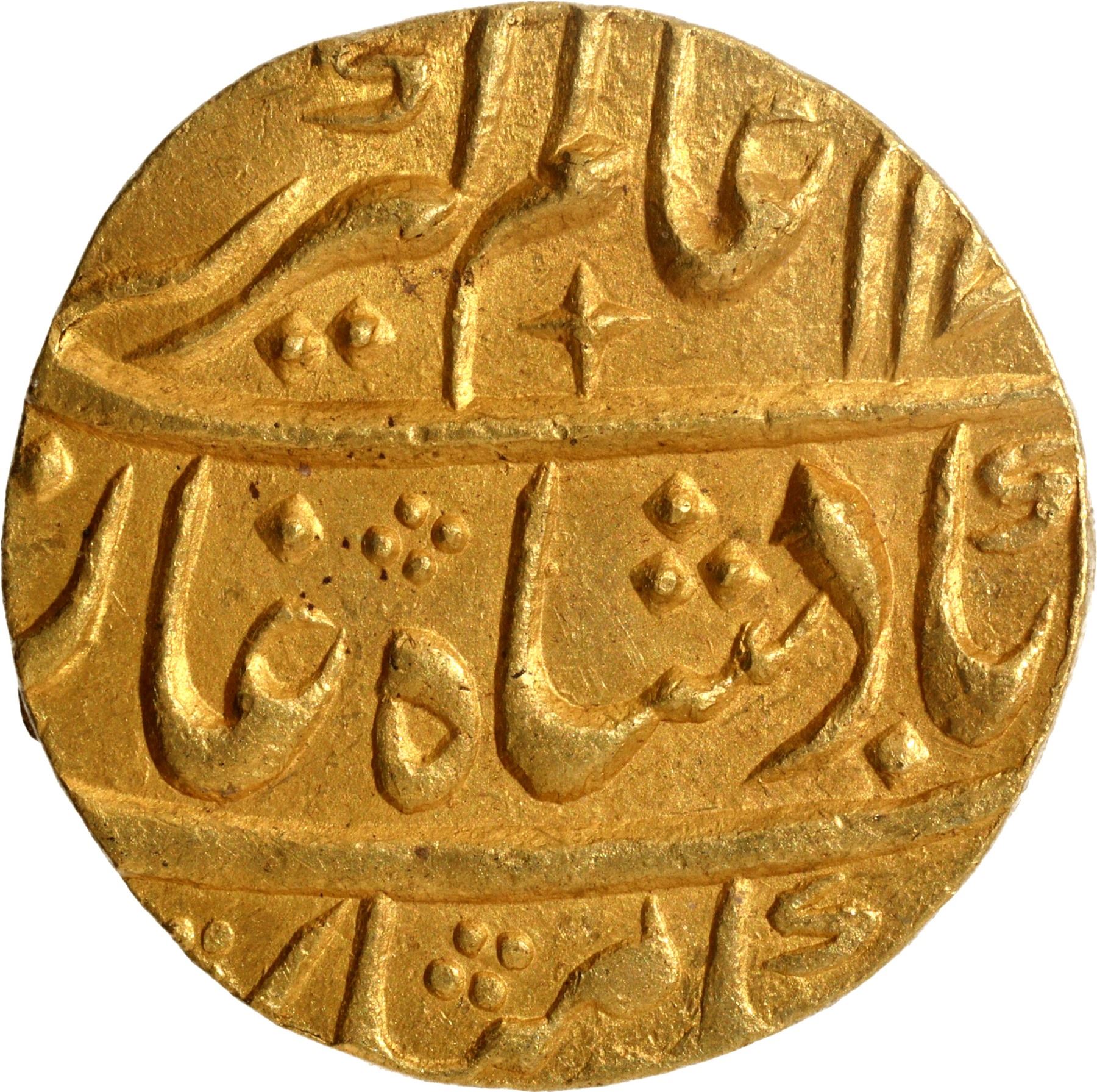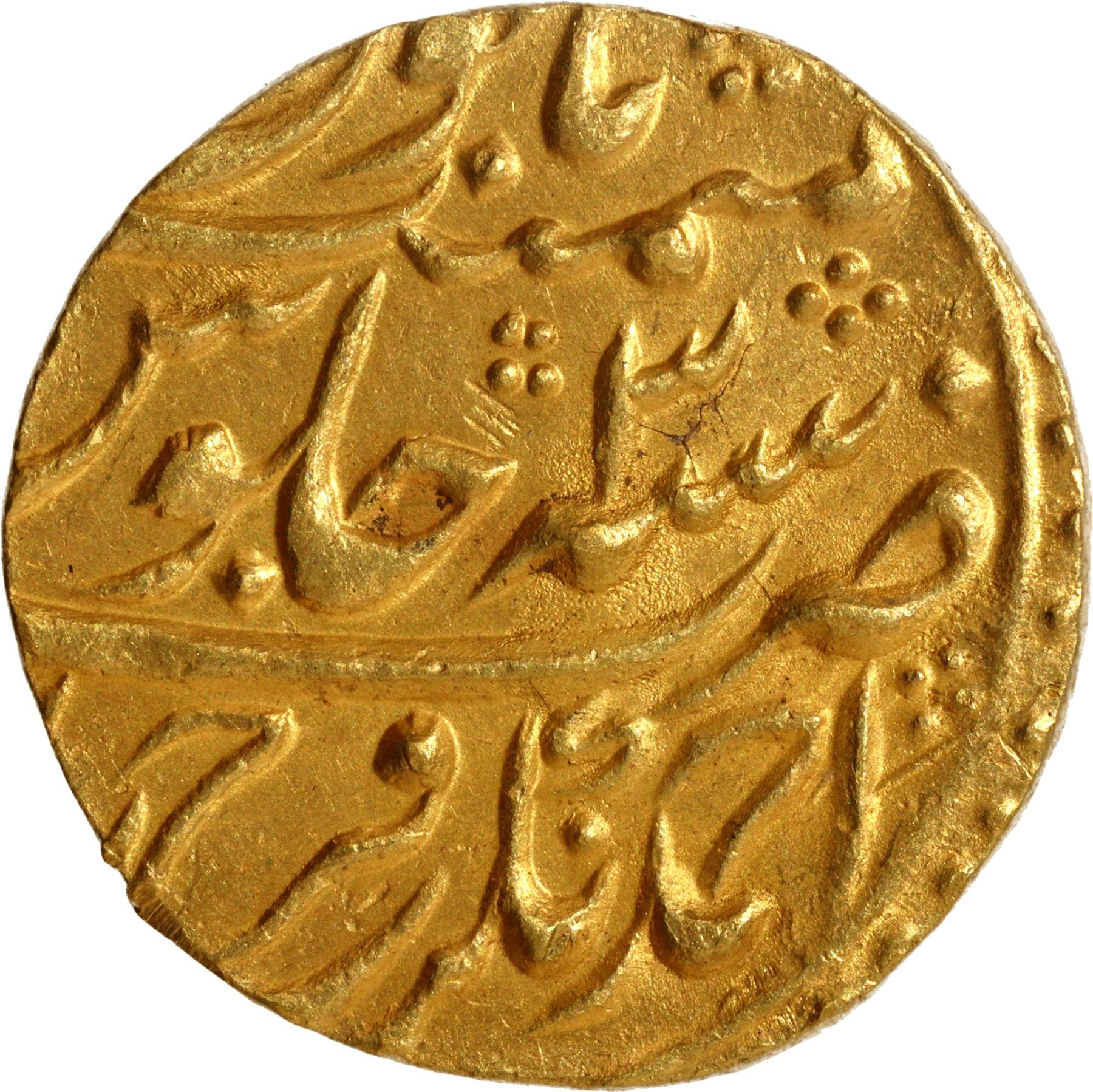 Note: The gold mohur of Nawab Ahmed Khan Bangash, minted in the name of Mughal ruler Alamgir II at Ahmednagar Farrukhabad mint, is rare to find. The date on this coin unlisted in the KM catalogue. We have not offered this in the past.