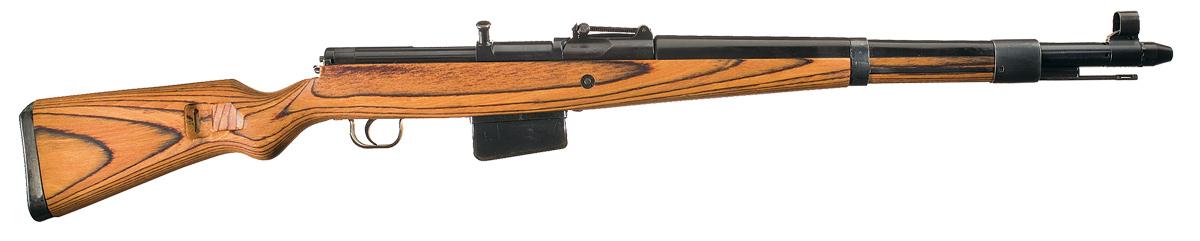 Condition: Excellent with 98% of the armory blued finish remaining overall, showing only minor edges and high spot wear on the edges of the box magazine and trigger guard bow, with clear sharp markings with no rounded edges. The stock is a current reproduction that exactly matches the original to include the double proof marks on the right side. The black handguard is original and has had a professional repair on top of the front portion, that is almost invisible to the general observer. The rifle has all matching external serial numbers. This is an exceptionally rare early G41 variant this is rarely found in any condition. Certainly would be the centerpieces of any advanced German rifle collection.