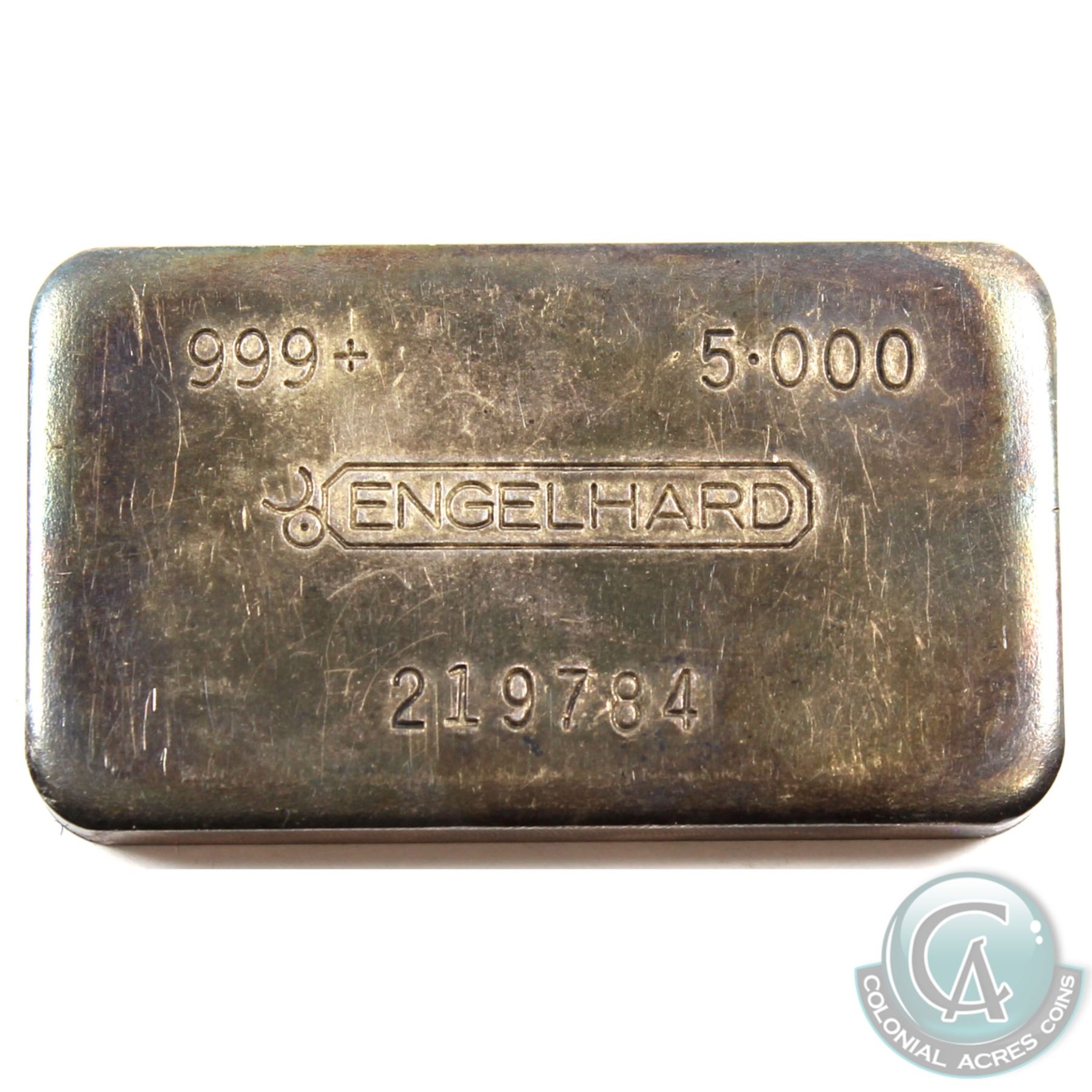 Extremely Rare! Engelhard 5oz 8th Series Machined Fine Silver bar! (TAX Exempt). Serial # 219784. 8th Series Machined bar in Canadian variation, last known variety produced. Listed mintage of less than 200 Produced!