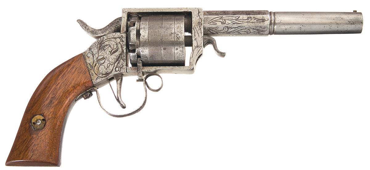 Extremely Rare Engraved Charles Buss Percussion Pocket Revolver, Serial Number 17